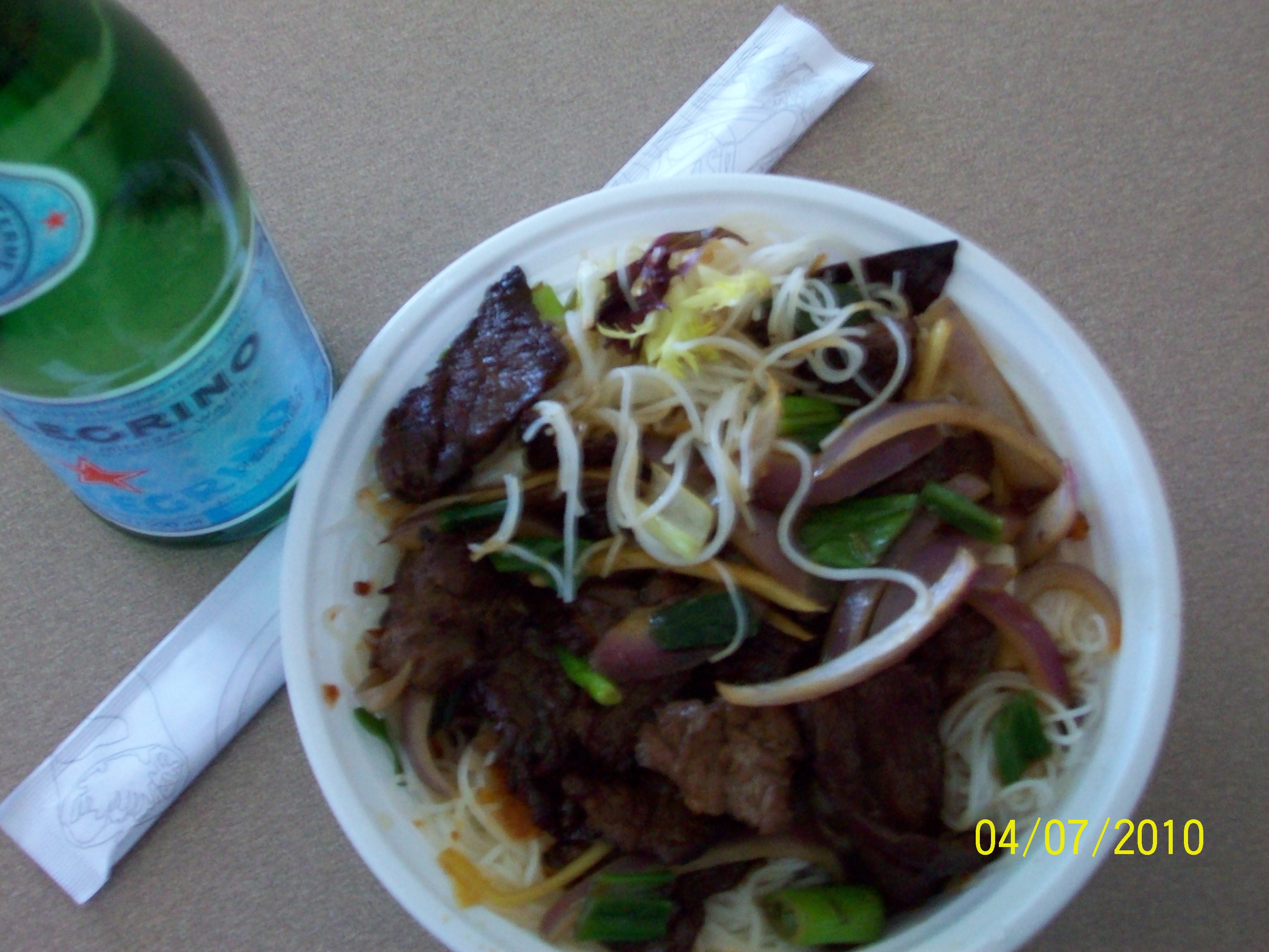 Okay, I didn’t order any of my favorites today, just the vermicelli with beef and a bottle of pellegrino to wash it down. Should have stuck with the trusted favorites, but again, it’s an experience.