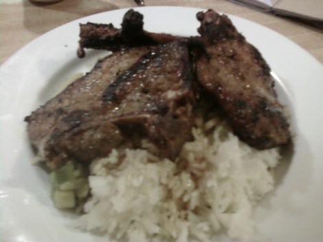 Yes, with summer coming, I had eaten more salads than usual. But I also hadn’t gone over to the other side. I do enjoy my greasy, comfort foods after all. And one of the comforts about coming to Cordon Bleu is knowing that the food will be good and cheap. This hole-in-the-wall restaurant with limited sitting has been around for a very long time. Regulars often visit here and order their famous meat-sauce rice with Imperial rolls and crisp-charred meat and their famous 5-spiced chicken. Their portions are huge. I can eat-in and take most of the food home for lunch the next day. And the prices are very reasonable. I tried everything on their menu and can say that everything is good. My favorite items are their five-spiced chicken, pork chop rice that comes with the green salad (pictured here)