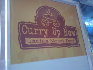 I was totally planning on eating salad one day when out of the corner of my eye, I saw this yellow taco truck and a huge line. Upon closer inspection, I realized that it isn’t a taco truck at all, but a curry truck. I did a triple take…seriously? A curry truck??? This I have to try. So I did…