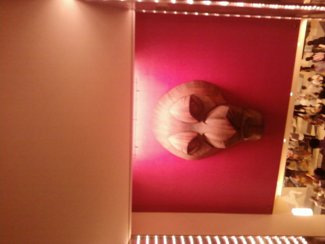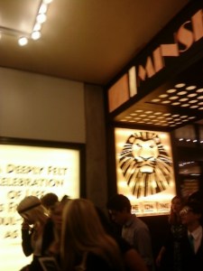 They don’t allow cameras inside either theatres, so one shot is the exterior of the lobby outside The Lion King. The other is a shot of a huge mask hanging above the escalators as you exit the show. I didn’t even bother to take any photo when I was at Avenue Q because I was totally running late, and almost didn’t get in.