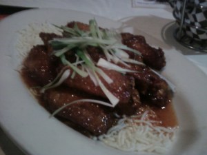 And we also had the Thai-styled chicken. The dish looks pretty but very much drenched in a Thai-styled sauce you can buy in a store. It still tasted pretty good. I think this one tastes better if you are drinking though.
