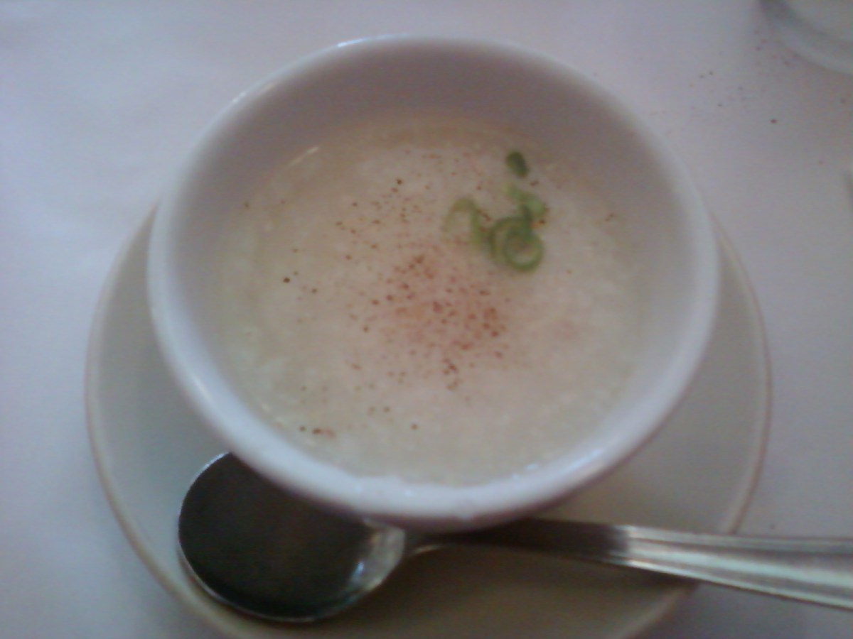 complementary house soup (vietnamese jook) Published 2010/07/25 at 1600 × 1200 in lunch @ aux Delices ← Previous Next → complementary house soup (vietnamese jook)