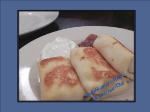 We came here for brunch recently. On this visit, we had a plate of Matzo Brie (fried matzo and scrambled eggs served with hash brown potatoes and whole wheat toast…you can get a bagel if you like, but I prefer whole wheat bread). We also shared their cheese blintzes with a side of apple sauce and sour cream. Although we didn’t get this on our recent visit, their pastrami rye sandwich….Awesome!