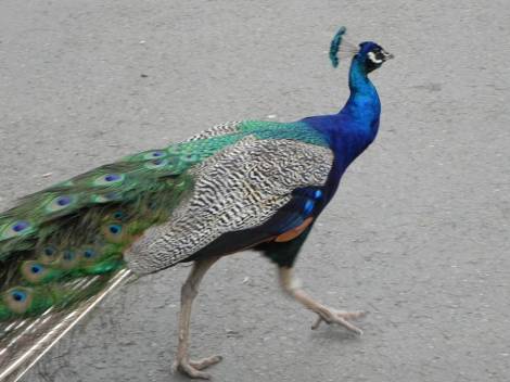 We recently visited the SF Zoo. We noticed that the peacocks were running around and acting like they own the place. They invade other animals’ exhibit spaces, run around chasing people (sort of), and routinely call out to their flock giving precise coordinates of where they are. I mean, who needs GPS when you have a bunch of peacocks doing their mating calls? Really!