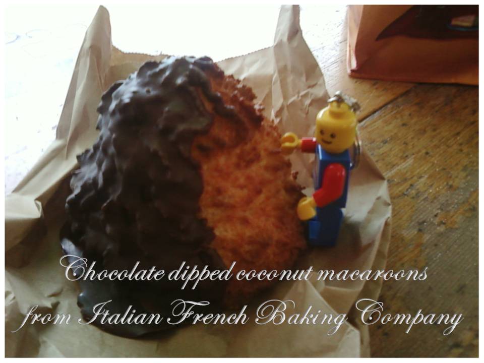 I can’t believe I haven’t posted about this until now, but we love, love, love the coconut macaroons here. This is the largest coconut macaroons I have ever seen. See the little guy trying to scale it? Incredible! 🙂
