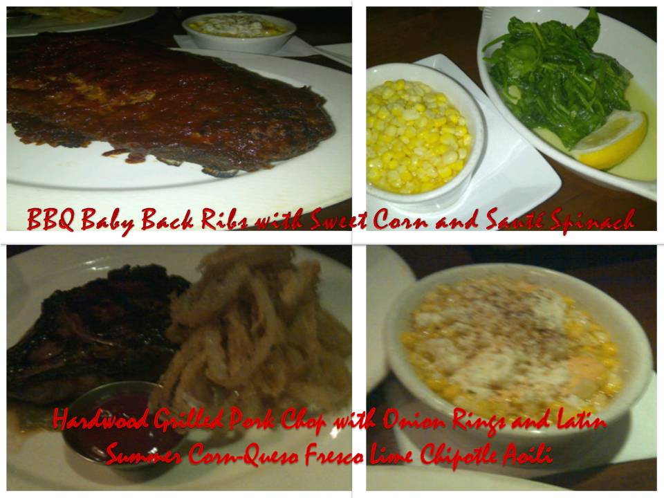 - Barbecue Baby Back Ribs (good but the sauce seems too sweet) with sauté spinach and sweet summer corn sauté –yummy sides!