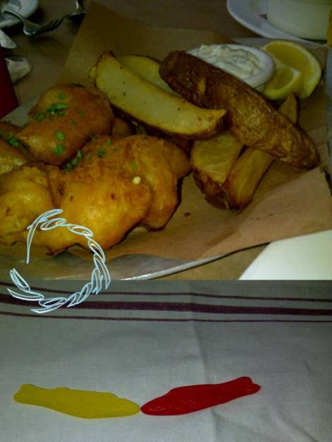 Fish & chips: anchor steam battered true cod, tartar sauce – Although tasting pretty good with malt vinegar and lemon, this dish was too greasy. (I think this oily (greasy) issue is a technical one (higher temp oil when frying please); however, it still affects the outcome.)