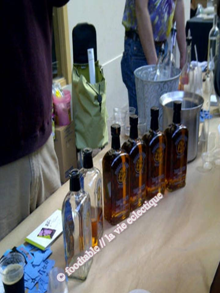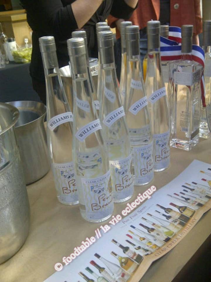 My absolute favorite spirit there at this event turned out to be a brandy (surprising I know) from Pure Fruit Spirits (Clear Creek Distillery) that tasted awesome but packs a BIG punch… Why is this awesome? This is the real deal. I learned that this is a classic eau-de-vie de poire. It takes 28 lbs. (approx 12.7 kilo) of pears (they use [Williams] Bartlett pears from orchards in Parkside, Oregon) to make ONE large bottle. This stuff’s strong, you do not drink more than 1-2 oz because of the high alcohol content. It smells and tastes like pears and it’s just amazing. Even though there were so many vendors there showcasing all their wares (from chocolates to pickles), I still remember this brandy and how it tasted.