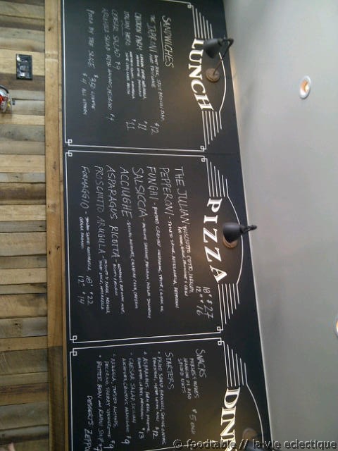 Gioia Pizzeria on Polk has chalkboard menu and nice wooden tables. For lunch, they offer appetizers, pizzas, salads, sandwiches, beers and wines. And for dinner, they serve some pasta dishes besides pizzas.