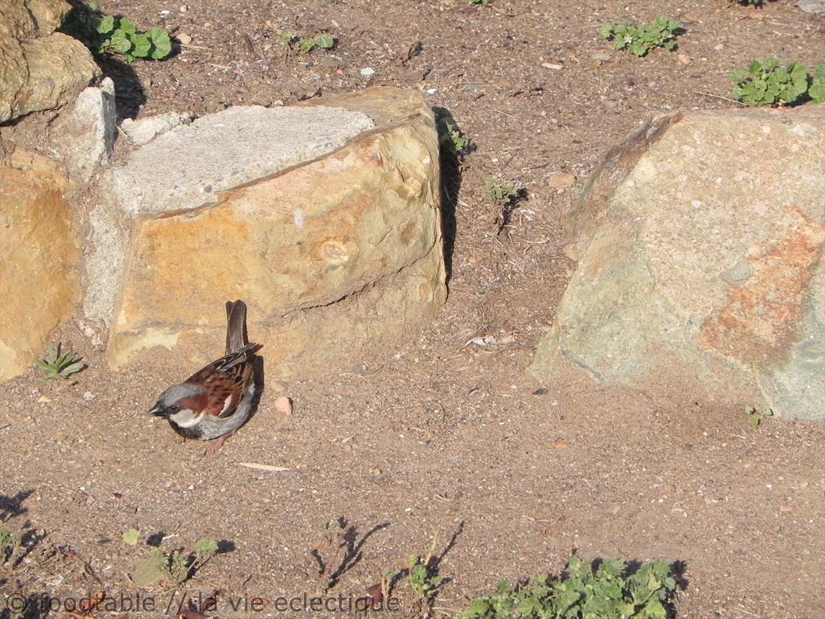 The bird is a sparrow, I think. =)