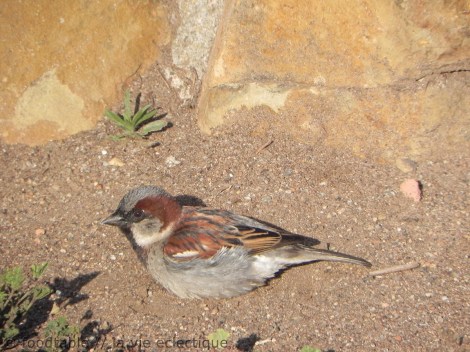 Hi Carla. It was such a nice day that day. I felt so bad for ruining his dinner. He made a little screeching noise before he flew off. Anyway, I think you and Texas both said it’s a sparrow, so I guess that’s that. Thanks for coming by. 🙂