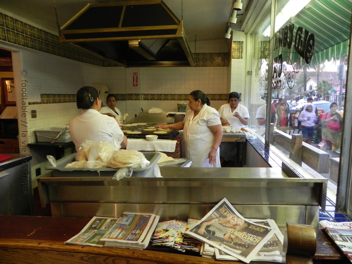 By now, we were both really hungry. We decided to go directly across the street to Old Town Mexican Café where they are famous for handmade tortilla. The rotisserie chickens at the window and the handmade tortilla just lures you right in…