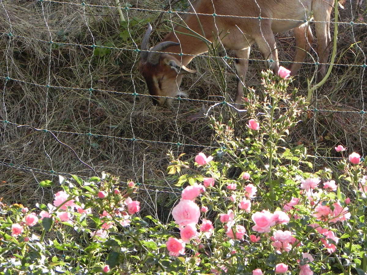 More goats! Saw them last week while I was out and about, they are munching on grass and unwanted vegetation and not sitting inside. Noticed how they fenced off the pretty flowers away from the goats? I think the owner want to keep those. 🙂